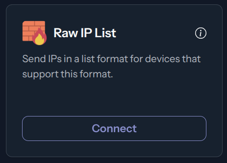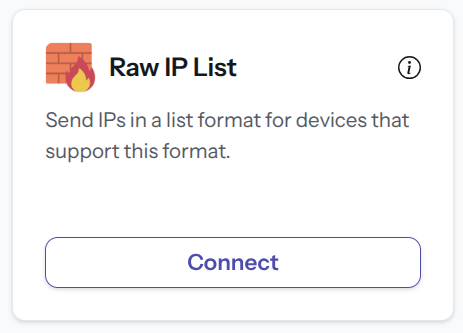 In the Integrations page, click Connect under the Raw IP List card.